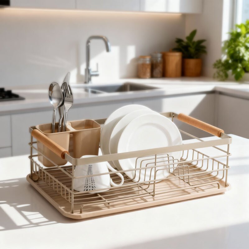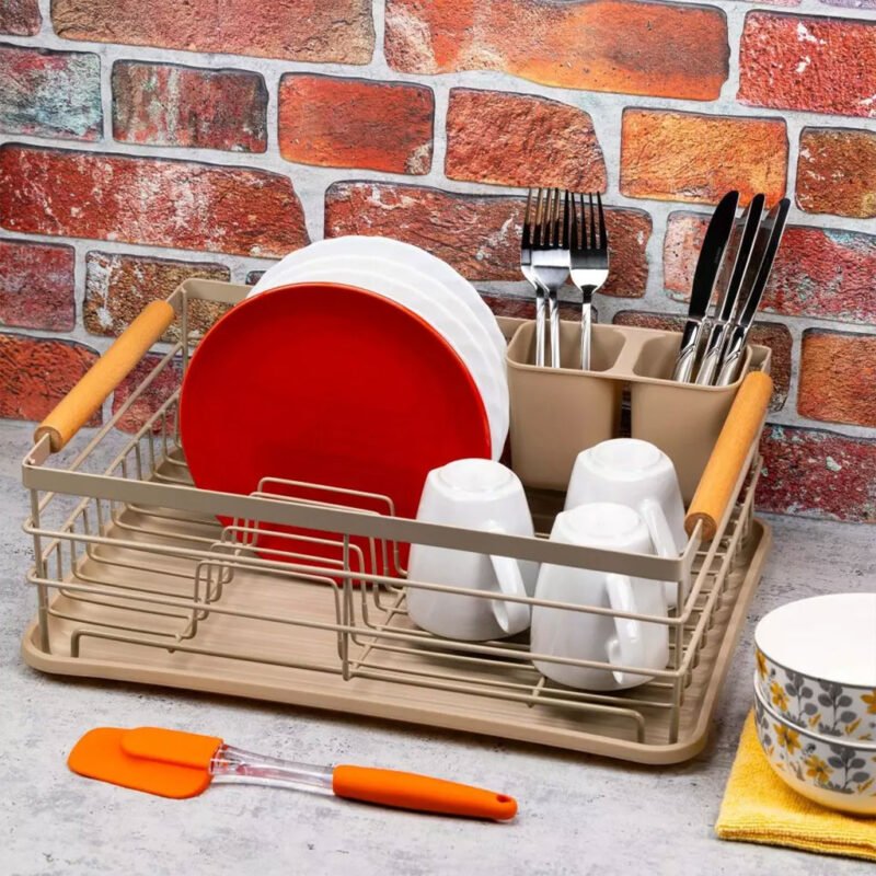 Égouttoir à vaisselle avec poignées en bois pour cuisine – منظم أواني داخل رف المطبخ