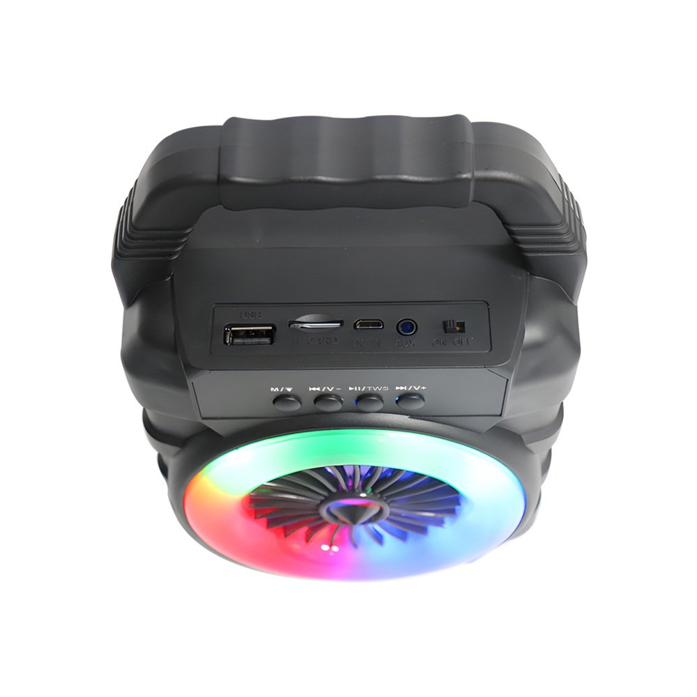مواصفات السماعة المحمولةتقنية بلوتوث v5.0 لارتباط سريع ومستقر.مدخل USB ومدخل بطاقة TF ومدخل AUX وراديو FM.مزودة بإضاءة RGB ملونة لإضفاء جو مميز.بطارية مدمجة تدوم لفترات طويلة.