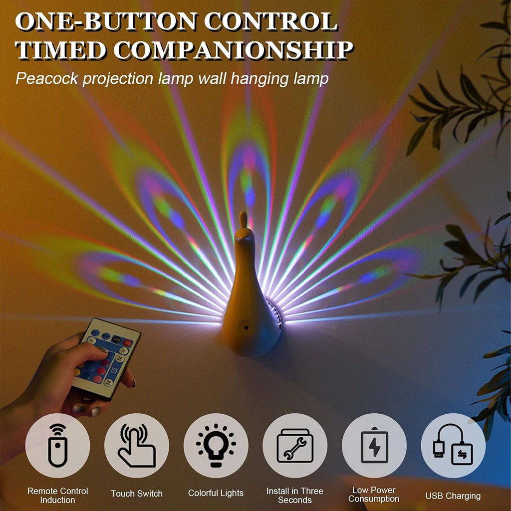 Applique murale en forme de paon 7 réglages de couleur avec télécommande – مصباح ديكور على شكل طائر الطاوس