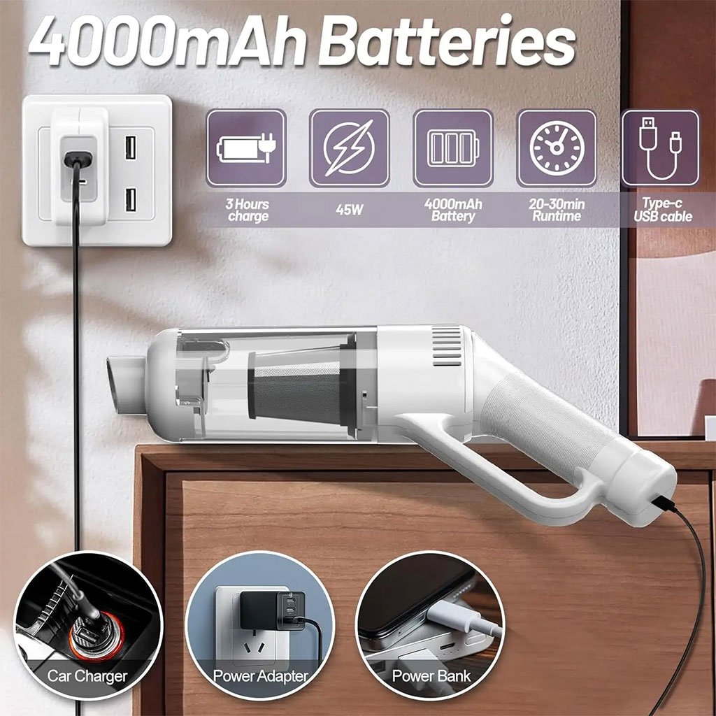 Aspirateur sans Fil Portable avec 4 Têtes Accessoires 9000Pa – مكنسة كهربائية محمولة