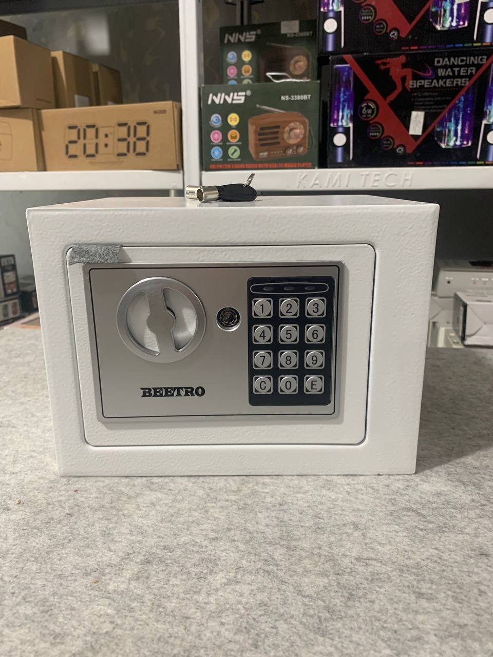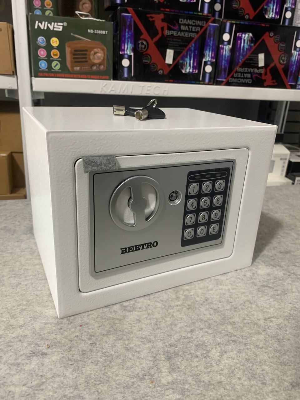 خزنة آمنة بترميز رقمي ومفاتيح احتياطية من Beetroقفل رقمي قابل للبرمجة (3 إلى 8 أرقام).إمكانية الفتح الطارئ باستخدام مفتاحين مرفقين.دعم التركيب على الجدار أو داخل الخزانة.قفل عالي الجودة بمزلاجين فولاذيين (إغلاق مزدوج).الوزن: 2.4 كجم.الأبعاد: 25×19×19 سم.