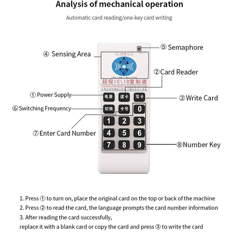 🔐📡 ناسخ وناسِـيخ البطاقات الذكية – متعدد الترددات وبحجم عمليهذا الجهاز يسمحلك بقراءة ونسخ البطاقات بكل سهولة، مع دعم واسع للترددات وأنواع كثيرة من البطاقات. صغير، عملي، وسهل الاستخدام في حياتك اليومية.⭐ المميزات الرئيسية1️⃣ وظيفة قراءة وكتابة البطاقات يمكنه القراءة والكتابة لأكثر من 10,000 مرة بدون مشاكل.2️⃣ تصميم صغير ومريح حجم صغير مطابق لعلم الأرجونوميا، مزوّد بـ : ✨ ضوء LED 🔊 منبّه صوتي (Buzzer) ساهل في الحمل والاستعمال اليومي.3️⃣ أزرار واضحة وسهلة الفهم كل وظيفة عندها زر خاص، يخلي الاستعمال بسيط حتى للمبتدئين.4️⃣ إعدادات حماية شخصية المستخدم يقدر يحدد شروط الدخول ويغيّر كلمة السر بكل حرّية.5️⃣ كشف أوتوماتيكي للترددات يدعم مجموعة كبيرة من الترددات : 125KHz / 250KHz / 375KHz / 500KHz / 13.56MHz 🔄 التردد يتعرف عليه تلقائياً.6️⃣ يدعم عدة أنواع من البطاقات ✔ EM4305 ✔ EM5200 ✔ EM8800 ✔ T5577 ✔ ZX-F08 UID ✔ ISO 14443 Type A⚙️ المواصفات التقنيةالحالة : جديدالمادة : ABSالحجم : 11 × 4.6 × 2 سممسافة الاستشعار : 6 سموقت القراءة : 0.1 ثانيةمدى القراءة : من 2.5 سم إلى 10 سمنوع البطارية : 2×AAA (غير مرفقة)درجة التشغيل : 0 – 50°Cوزن الجهاز : حوالي 52 غرام📦 محتوى العلبة1 × جهاز ناسخ البطاقات (Card Duplicator)