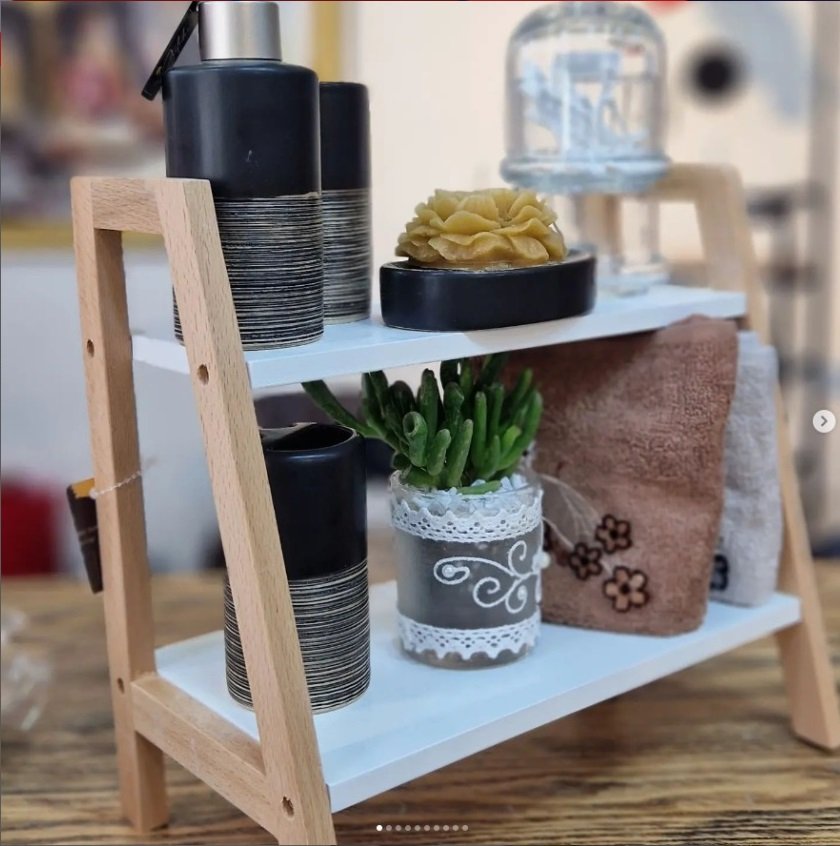 رف خشبي متعدد الاستخداماتالمواد: ألواح MDF عالية الجودة بمعيار E1 + إطار من الخيزران.الأبعاد: (تقريباً) الطول 34.5 سم × العرض 12 سم × الارتفاع 37 سم.سهولة التركيب: يتضمن تعليمات وأدوات تركيب كاملة.قدرة التحمل: من 5 إلى 10 كغ موزعة بالتساوي، ثابت على الأسطح المستوية ومتـين.الاستخدامات: مكتبة صغيرة، رفوف تخزين، أو حتى رف عرض للديكور.