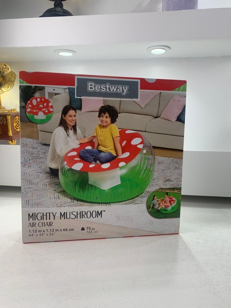كرسي هوائي للأطفال بتصميم فطر من Bestwayأبعاد: 112 × 112 × 66 سمتصميم فطر جذاب ومرحمناسب للأطفال من عمر +6 سنوات، ويتسع لشخص واحد.مصنوع من بلاستيك PVC متينسهل التنظيف باستخدام قطعة قماش مبللةلون متعدد (Multicouleur)