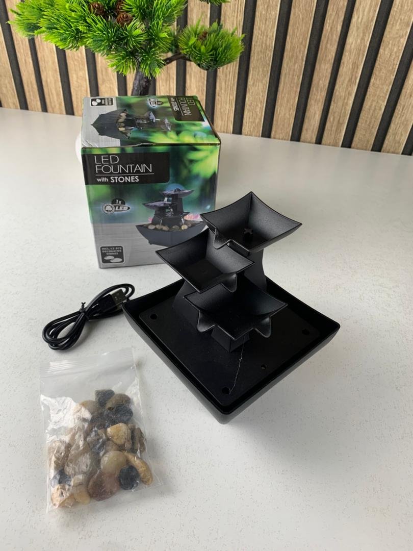 🌊✨ نافورة مائية مكتبية USB – أناقة، طاقة إيجابية، وهدوء لا مثيل له1️⃣ أناقة وهدوء مريح للأعصاب زيّن مكتبك أو مساحة عملك بهذه النافورة المائية الصغيرة التي تعمل عبر USB. صوت الماء المتدفق يخلق جوًا مريحًا يساعد على الاسترخاء وزيادة التركيز والإنتاجية.2️⃣ جذب الرزق والطاقة الوفيرة تم تصميم النافورة لتعزيز طاقة الوفرة، حيث يرمز تدفق الماء إلى تدفق المال والخير. كما تضيف الإضاءة LED لمسة إيجابية وبسمة من الازدهار إلى المكان.3️⃣ إضاءة LED دافئة وجذابة الإضاءة المدمجة تمنح النافورة مظهرًا ساحرًا، وتضيف إشراقة دافئة تجعل المكتب أو غرفة النوم أكثر جمالًا وراحة.4️⃣ حصى تزيينية طبيعية تأتي مع حِصى غير منتظم الشكل يمنح النافورة مظهرًا طبيعيًا ويزيد من جمال الديكور في أي مساحة توضع فيها.5️⃣ مناسبة لكل الأماكن بفضل حجمها الصغير، يمكن وضعها في: غرفة النوم، الصالون، المكتب، طاولة القهوة، ديكور التلفاز… وغيرها.📌 المواصفات التقنية :نوع المنتج: نافورة ماء USBالمرفقات: كيس حجارة غير منتظمة (الكمية قد تختلف)مصدر الطاقة: USB Type-C – طاقة 5Vالاستخدام: غرفة المعيشة، غرفة النوم، المكتب، طاولة جانبية، ديكور التلفازالأبعاد: 16.51 × 16.51 × 17.78 سمالوزن: حوالي 511 غرامالإضاءة: LED بلون أصفر دافئ🧴 طريقة الاستخدام :املأ الخزان بكمية مناسبة من الماء.وصل الكابل USB بمصدر طاقة.شغّل المفتاح واستمتع بصوت الماء المريح وإضاءة LED الجذابة.📦 محتويات العلبة :كيس حجارة تزيينيةكابل USBدليل الاستخدامنافورة مائية مكتبية