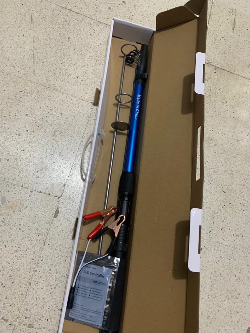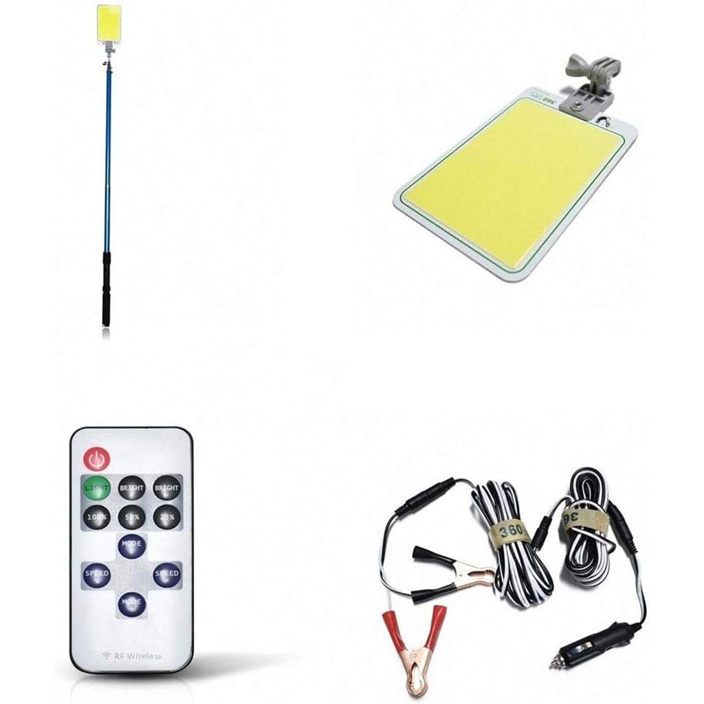 مجموعة إضاءة LED عالية القدرة لصيد السمك (800 واط / 2400 لومن)محتويات الحزمة: عصا صيد 4.5 م + حامل عصا + كابل 5 م + ولاعة سيارة + مشابك بطارية + حامل قابل للتعديل.أوضاع الإضاءة المتعددة: 100%، 50%، 25%، وضع وميض متعدد، وضع SOS للطوارئ.إضاءة فائقة: قوة عالية مع استهلاك منخفض للطاقة.مصدر الطاقة: تعمل مباشرة على بطارية السيارة أو بطارية 12 فولت.أمان عالي: لا ترتفع حرارة اللوح بشكل خطر بفضل تبديد الحرارة الممتاز.مقاومة للماء بمعيار IP68: مثالية للاستخدام الخارجي القاسي.ضمان دولي لمدة 12 شهراً + دعم فني مدى الحياة.