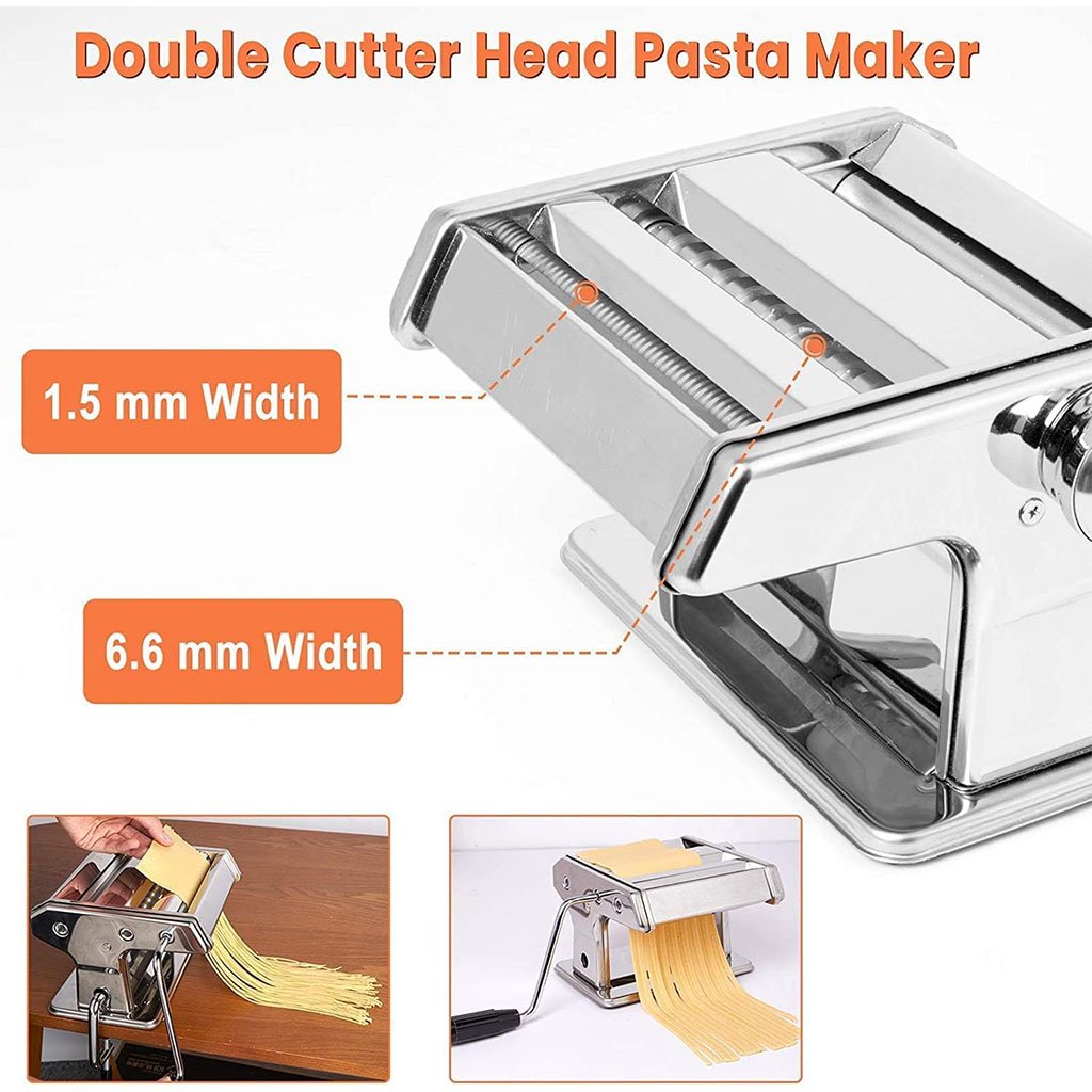 🍝 ماكينة فرد العجين اليدوية – تحكّم دقيق ونتائج احترافية 🍝 حضّر المعجنات والمكرونة في منزلك بكل سهولة واحترافية مع ماكينة فرد العجين العملية، المصممة لتمنحك تحكمًا كاملًا في السمك والنتيجة النهائية 👌✨ المميزات: ✔️ 9 إعدادات للمقبض تمنحك تحكمًا دقيقًا في عملية الفرد حسب نوع العجين المطلوب.✔️ سُمك عجين قابل للتعديل من 0.5 مم إلى 30 مم، مثالية للبيتزا، المعجنات، اللازانيا، والمكرونة الطازجة.✔️ سكاكين مزدوجة من الألمنيوم شفرتان بمقاسين 1.5 مم و 6.5 مم لتقطيع العجين بأشكال مختلفة وبسلاسة.✔️ استخدام يدوي في أي مكان لا تحتاج إلى كهرباء ⚡، عملية وسهلة الاستعمال في المنزل أو أثناء السفر.✔️ أقدام مانعة للانزلاق ثبات ممتاز على سطح العمل لراحة وأمان أثناء الاستخدام.🧱 المواد: ألمنيوم عالي الجودة لضمان المتانة وسهولة التنظيف.🎯 مثالية لـ: المعجنات، البيتزا، المكرونة، اللازانيا، وكل أنواع العجين المنزلي.
