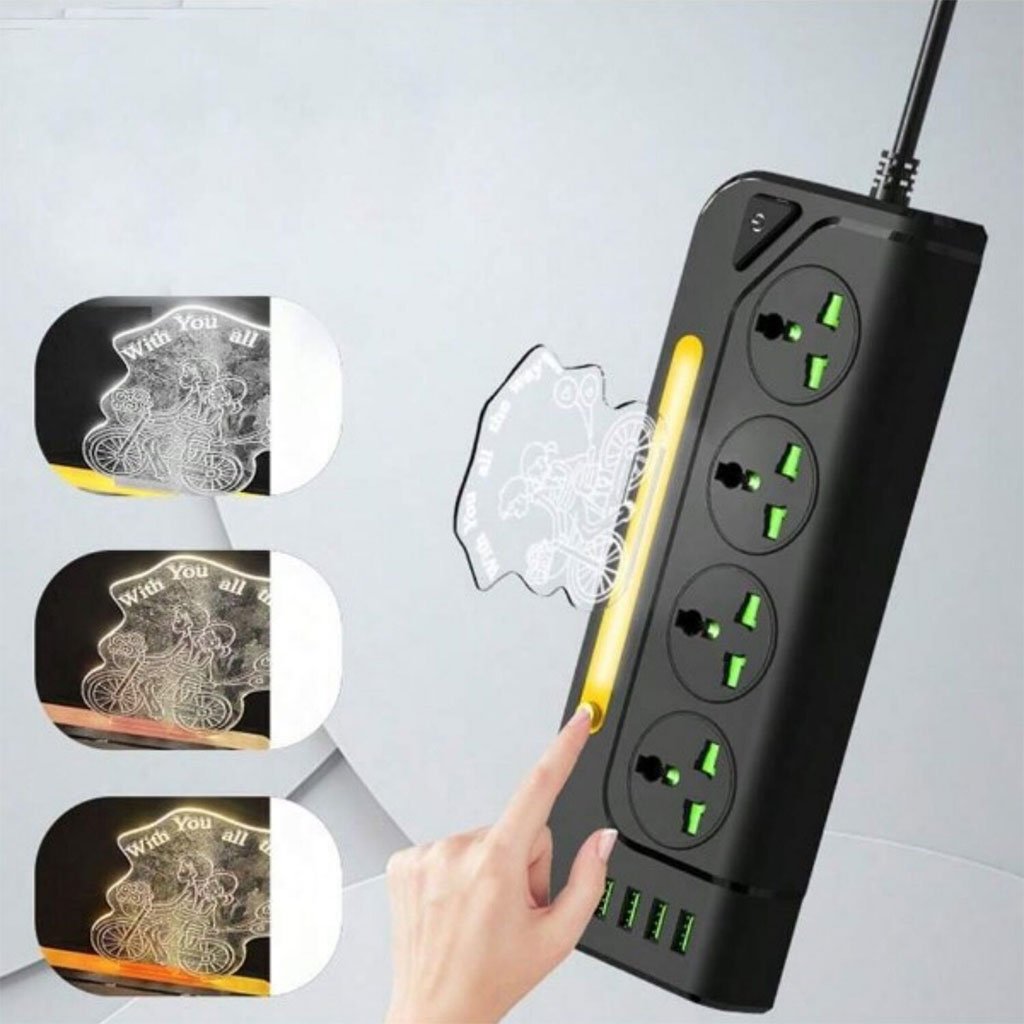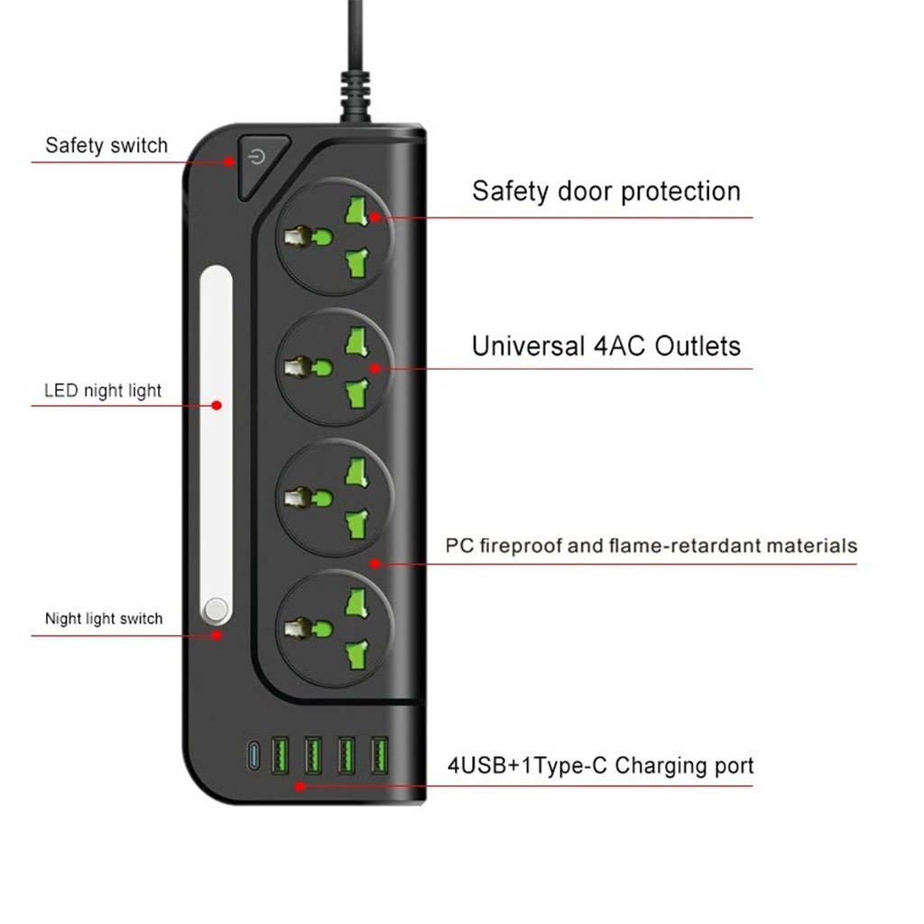 Multiprise 4 Sockets avec 4 Ports USB 1 Type-C 4000W Protection Surcharge et Lampe De Chevet – مقبس طاقة مع منافذ شحن
