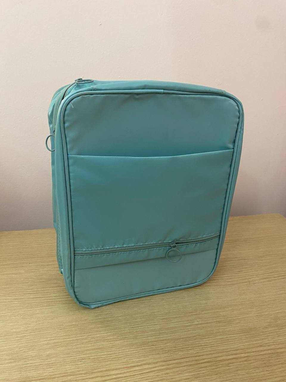 حقيبة تنظيم الأحذية عالية الجودة للسفرمصنوعة من قماش فاخر مقاوم للماء أكثر قوة ومتانة من الأقمشة العادية مع سحاب مزدوج سلس.سعة كبيرة تستوعب حتى 3 أزواج من الأحذية حتى مقاس 8 (30×23×14 سم).تصميم داخلي ذكي يفصل الأحذية لحمايتها من الاحتكاك والخدوش.حقيبة عملية للسفر مزودة بمقبض حمل وحقيبة خلفية تُثبت على حقيبة السفر بسهولة.استخدامات متعددة يمكن استعمالها كحقيبة مستلزمات تجميل، أدوات، أو ملابس داخلية.