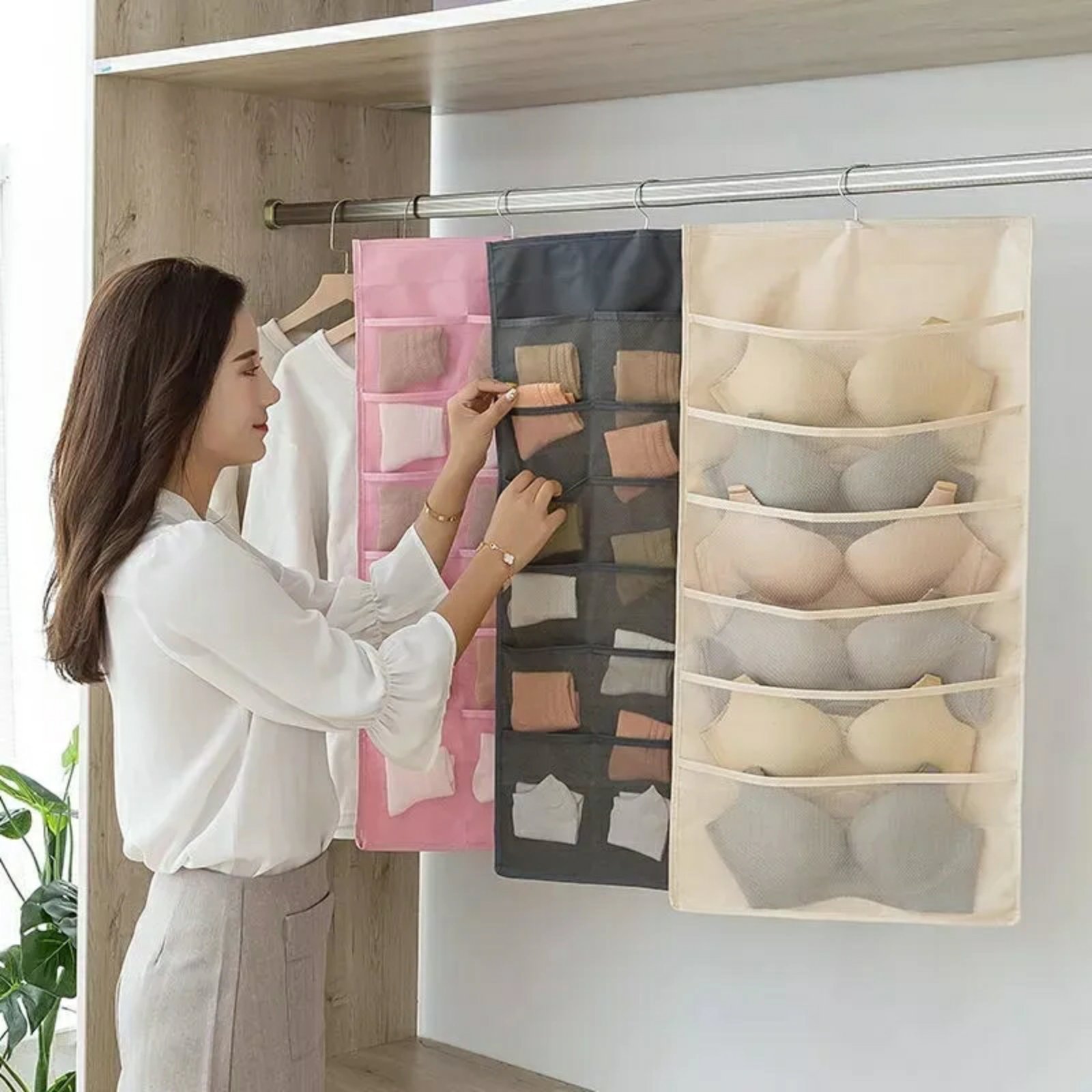 Organisateur de sous-vêtements multi-poches Double face suspendu de chaussettes de soutien-gorge