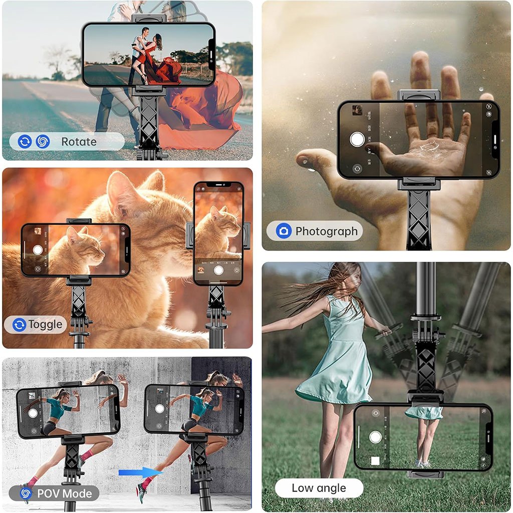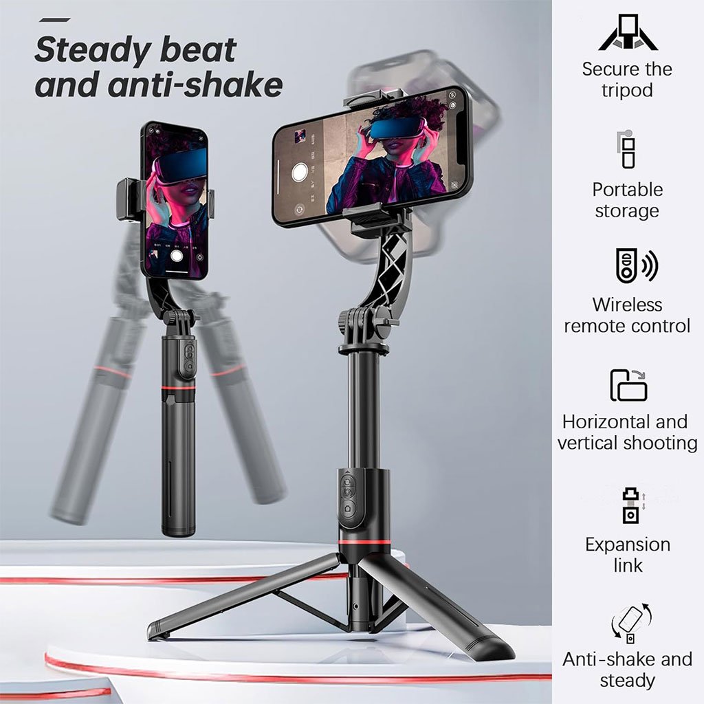 🤳 عصا سيلفي 3 في 1 مع مثبّتتعمل كـ عصا سيلفي، حامل طاولة، ومثبت للتصوير.تقنية مضادة للاهتزاز لضمان لقطات ثابتة أثناء الحركة.حامل هاتف قابل للتعديل يناسب أجهزة من 43 إلى 91 ملم.قضيب ألومنيوم متين قابل للتمدد حتى 70 سم.ريموت بلوتوث للتحكم عن بعد وتدوير المثبت بسهولة.