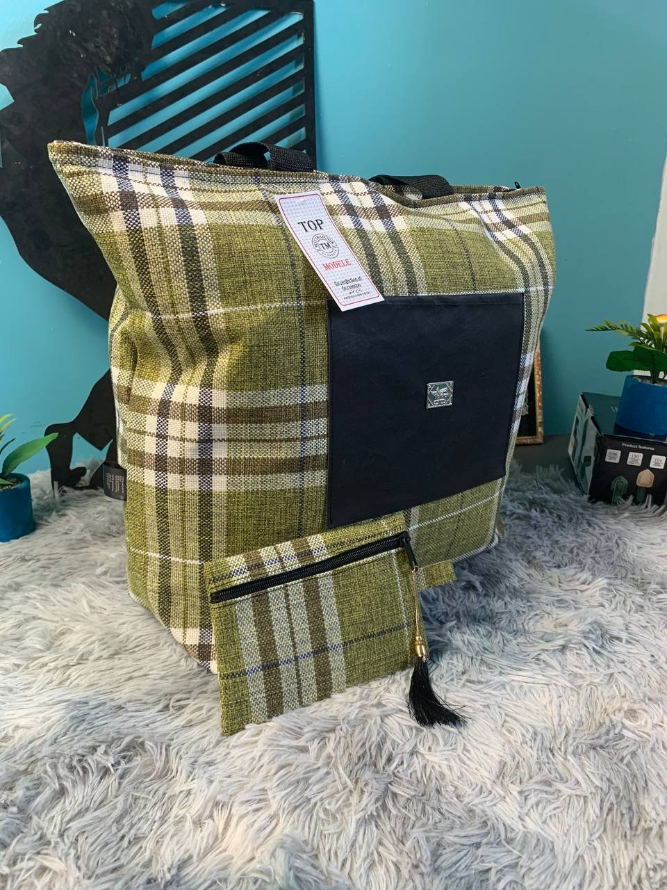 حقيبة يد كبيرة بسحّاب وجيب خارجيالأبعاد: 45×50 سمأبعاد المحفظة: 17×10 سممثالية لحمل كل احتياجاتك اليومية، إكسسوار أساسي لكل النساء.