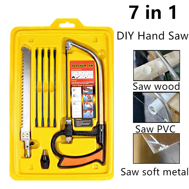 منشار يدوي متعدد الاستخدامات 7 في 1المميزات:يوفر الجهد: قص وإصلاح المواد بسهولة وسرعة.استخدامات متعددة: يقطع الخشب والبلاستيك والزجاج والمطاط والحبال والسيراميك والمعادن اللينة وحتى الفولاذ المقاوم للصدأ.سهولة الاستخدام: إمكانية تركيب أنواع مختلفة من الشفرات بسرعة وأمان.قص دقيق: زوايا متنوعة وقص عالي الدقة للتصاميم الحديثة.استخدام واسع: مثالي للإصلاحات المنزلية والأعمال الاحترافية دون الحاجة لحمل مناشير متعددة.جودة عالية: مصنوع من معدن قوي مع مقبض مريح لا يرهق اليد.المواصفات:النوع: منشار يدوي متعدد الاستخدامات 7 في 1المادة: فولاذمحتويات العبوة:1 × منشار يدوي3 × شفرات صغيرة2 × شفرات كبيرة1 × أداة تثقيب1 × برغي