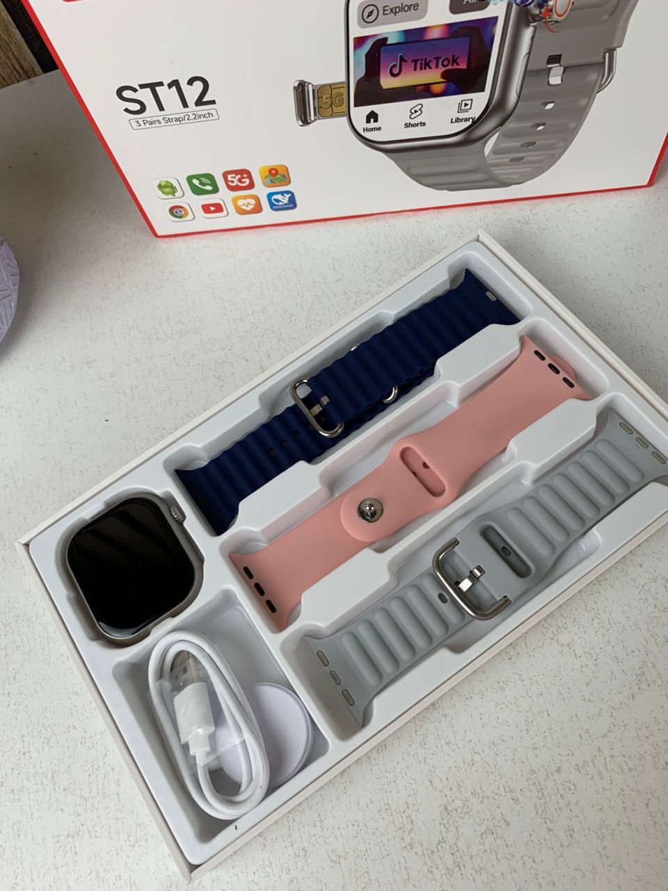 Smart Watch ST12 Compatible avec Carte Sim 5G Stockage 64GB Ai Fonction – ساعة ذكية مع 3 أساور