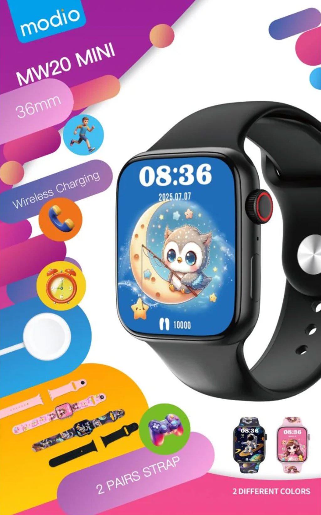 Smartwatch Modio MW20 Mini pour filles et garçons avec 2 bracelets – ساعة ذكية للأطفال