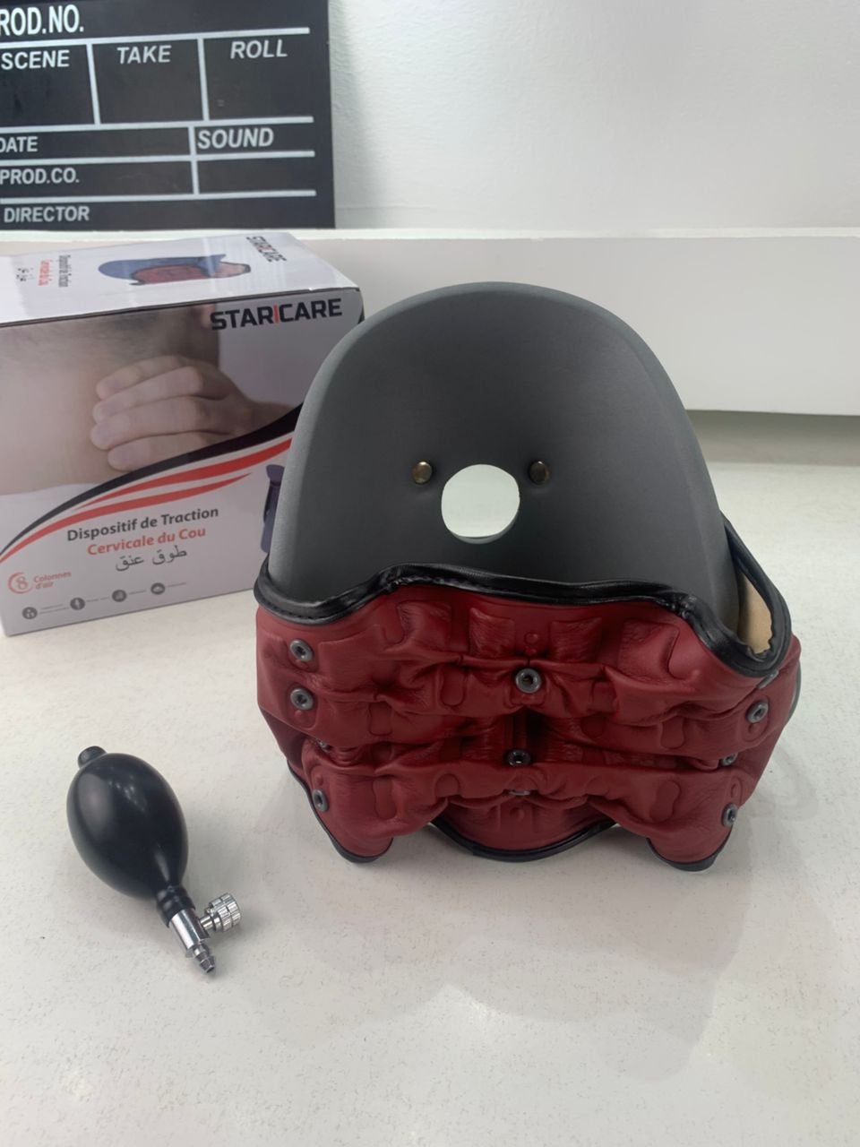 STARICARE Civière de cou gonflable et rétracteur de traction cervicale avec pompe – أداة تصحيح وضعية العنق