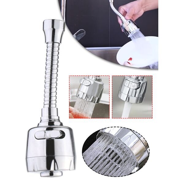 رأس رشاش دوّار لصنبور المطبخاللون: فضي (كروم).المادة: بلاستيك ABS + فولاذ مقاوم للصدأ + سيليكون.الحجم: 150 × 30 مم.المميزات:تركيب مباشر بدون أدوات.يوفر استهلاك الماء بفضل وصوله لجميع جوانب الحوض.تصميم دوار 360 درجة لتغطية كاملة.مقاوم للتآكل والصدأ.مزود بوصلة لولبية مناسبة للصنابير الملولبة.