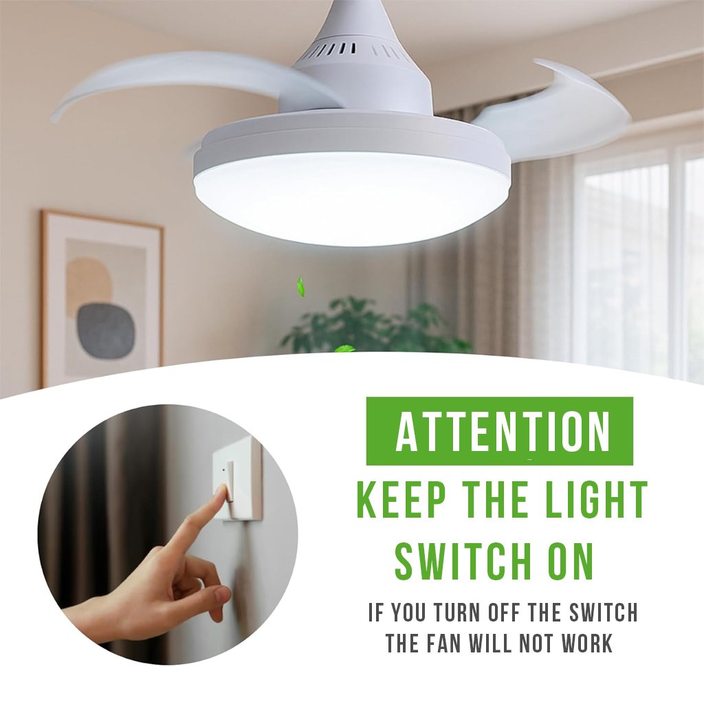 Ventilateur de plafond rétractable avec lumière réglable et télécommande